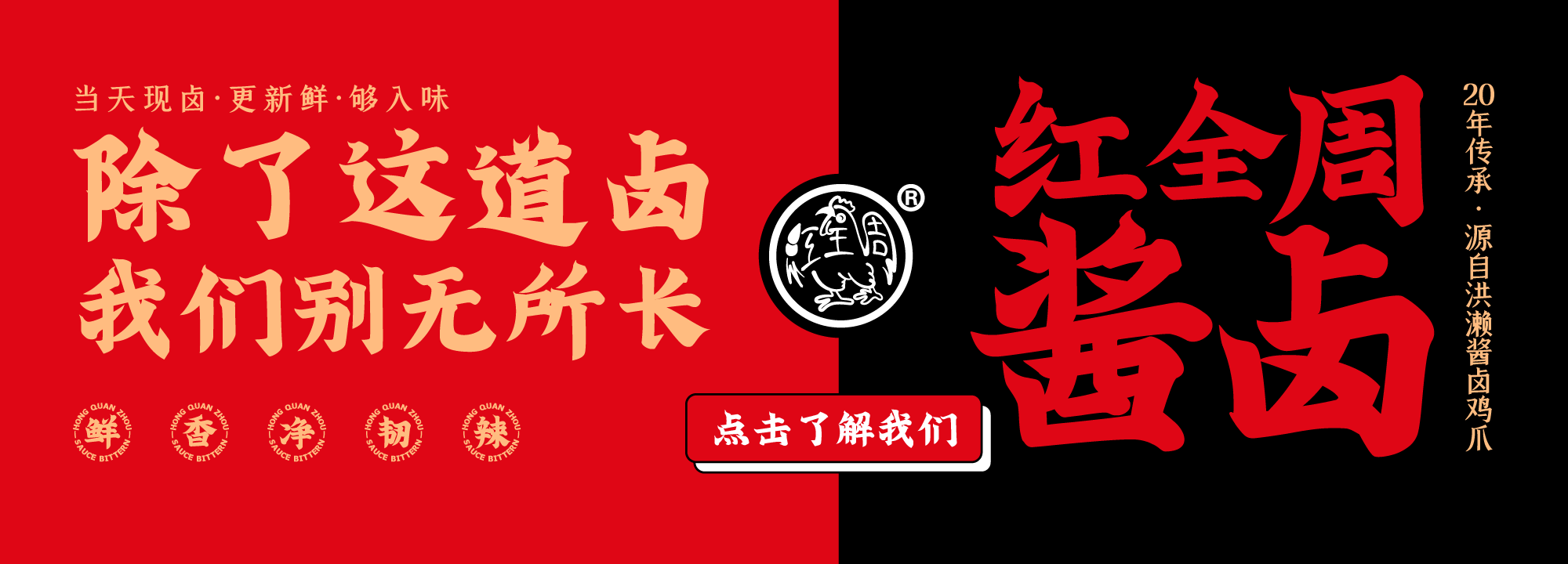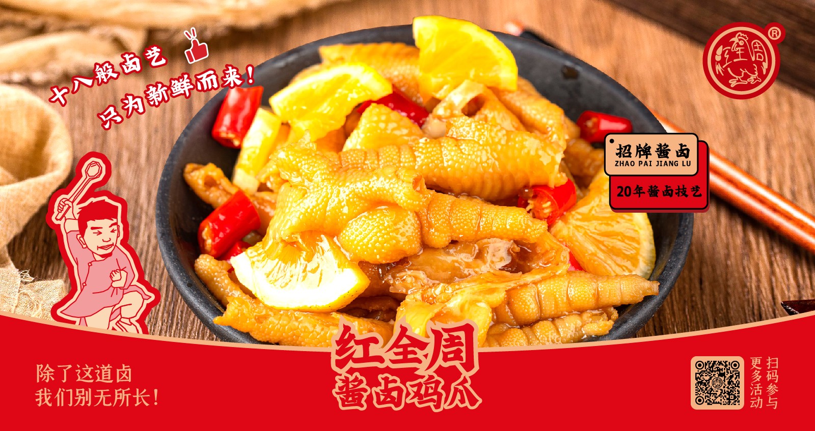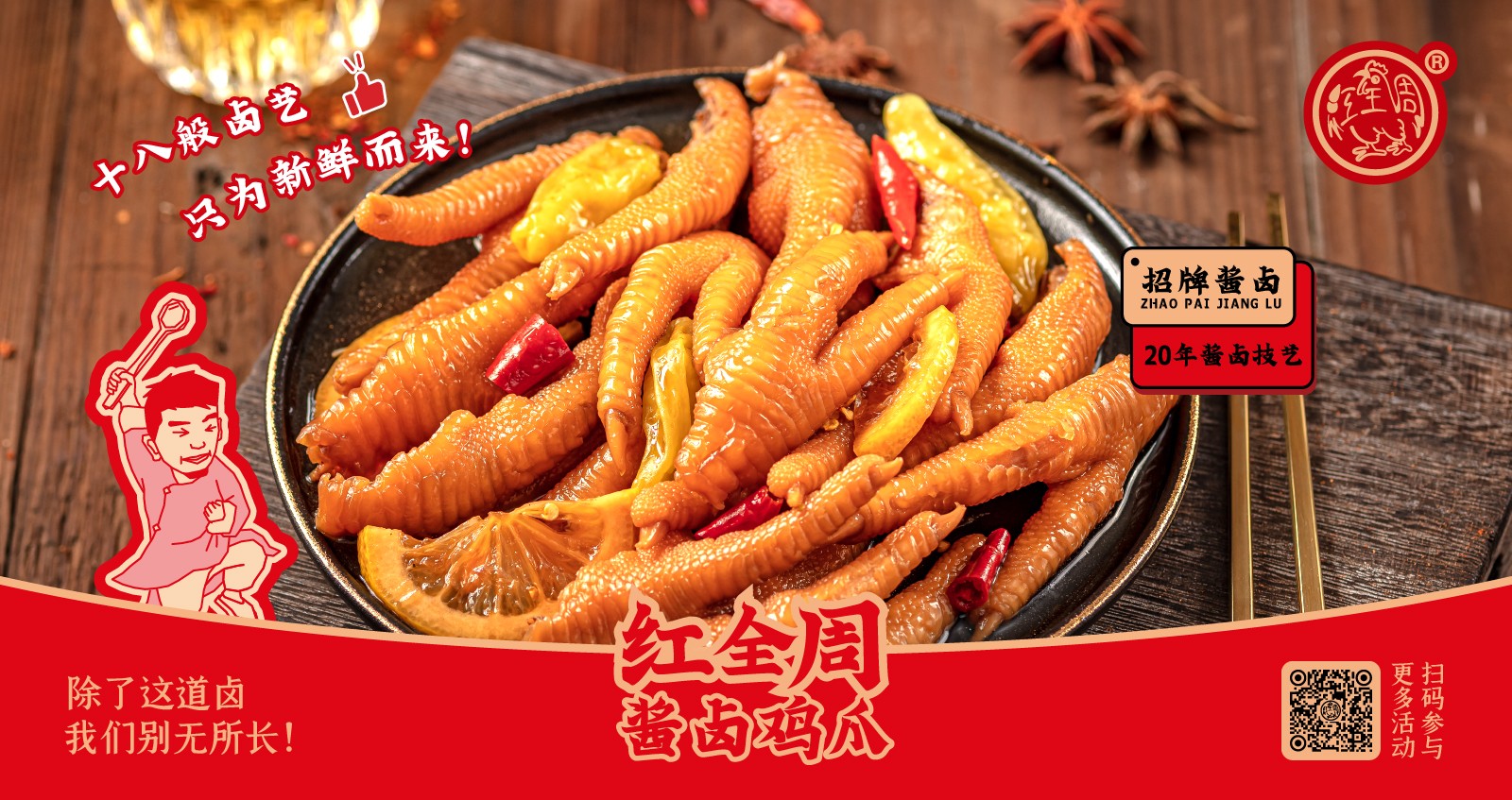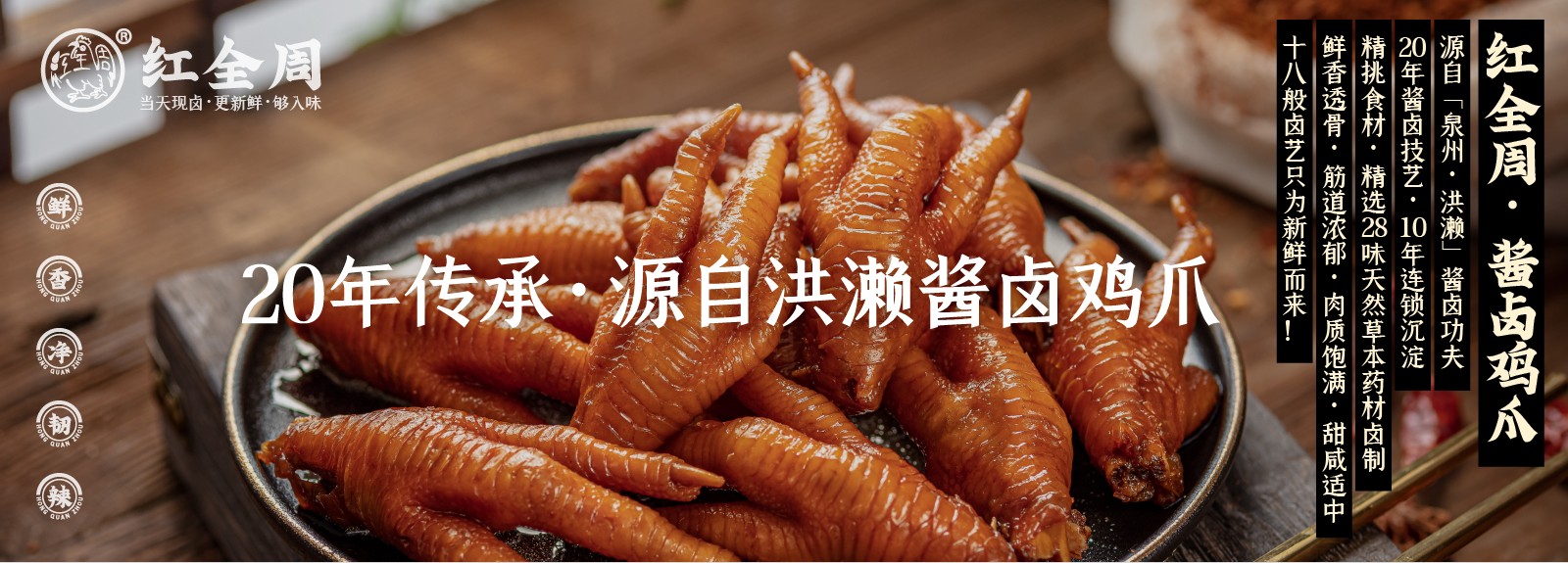 紅全周品牌創(chuàng)立于2012年,其生產(chǎn)總部坐落在以“紅全周雞爪”聞名的福建泉州市南安洪瀨鎮(zhèn),經(jīng)張福來師傅多年研制而成的獨家秘方,獨特的鹵制工藝,以“鮮、香、韌、辣”的特點,贏得廣大食客的交口稱贊。紅全周繼承中華美食傳統(tǒng),堅持以“細(xì)微處見風(fēng)范,毫厘間定乾坤”的服務(wù)準(zhǔn)則,遵循現(xiàn)代健康飲食理念,精選上等食材,致力為消費者提供安全、健康的美食新體驗。