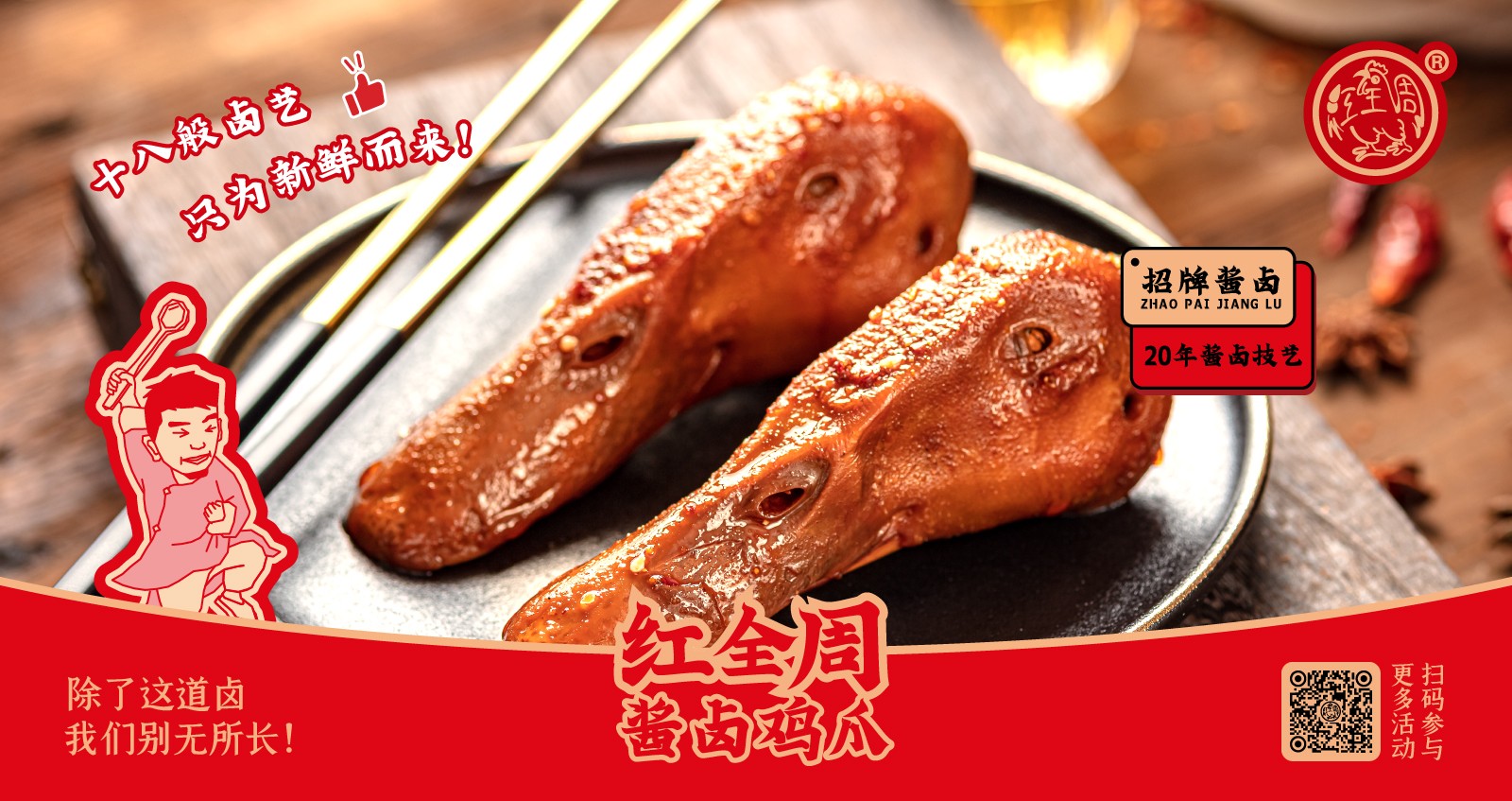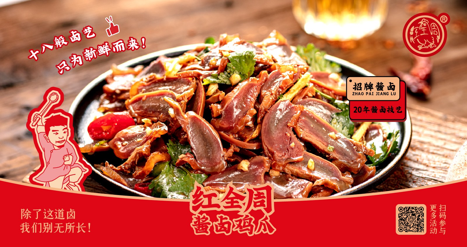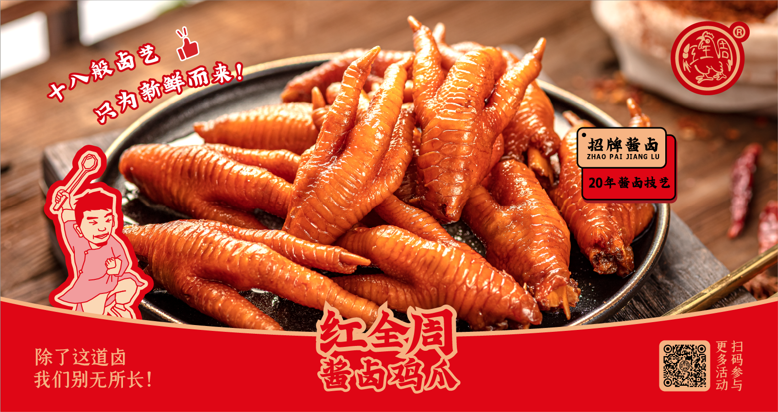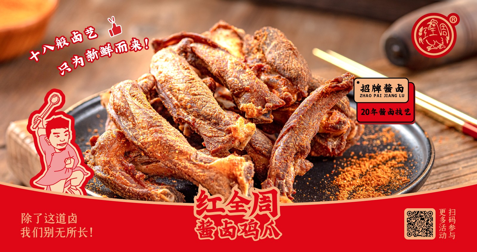紅全周品牌創(chuàng)立于2012年,其生產(chǎn)總部坐落在以“紅全周雞爪”聞名的福建泉州市南安洪瀨鎮(zhèn),經(jīng)張福來師傅多年研制而成的獨家秘方,獨特的鹵制工藝,以“鮮、香、韌、辣”的特點,贏得廣大食客的交口稱贊。紅全周繼承中華美食傳統(tǒng),堅持以“細(xì)微處見風(fēng)范,毫厘間定乾坤”的服務(wù)準(zhǔn)則,遵循現(xiàn)代健康飲食理念,精選上等食材,致力為消費者提供安全、健康的美食新體驗。